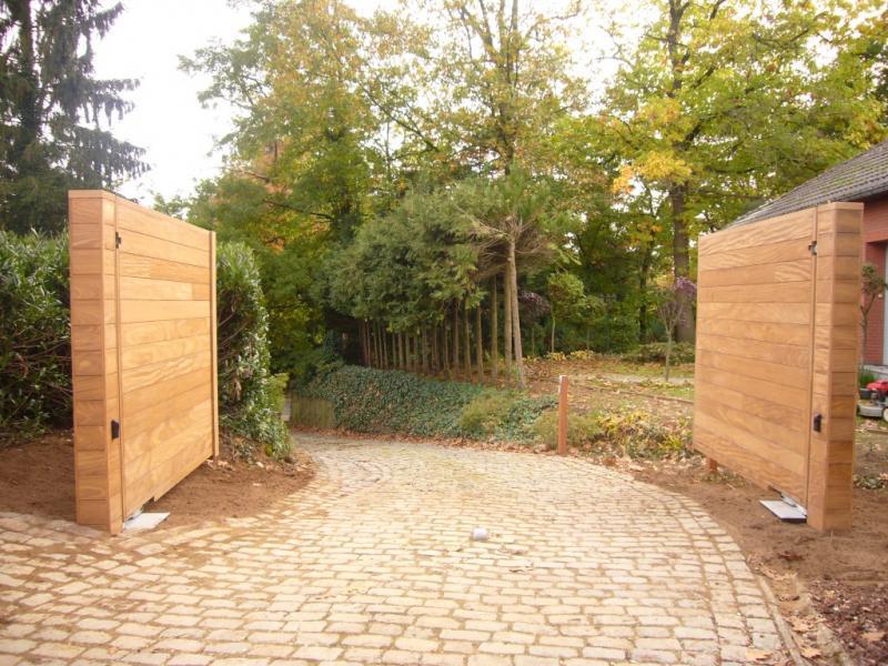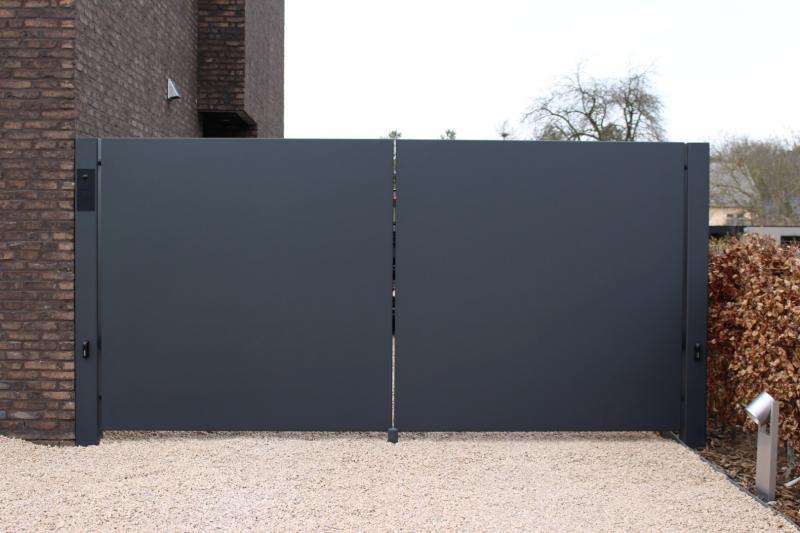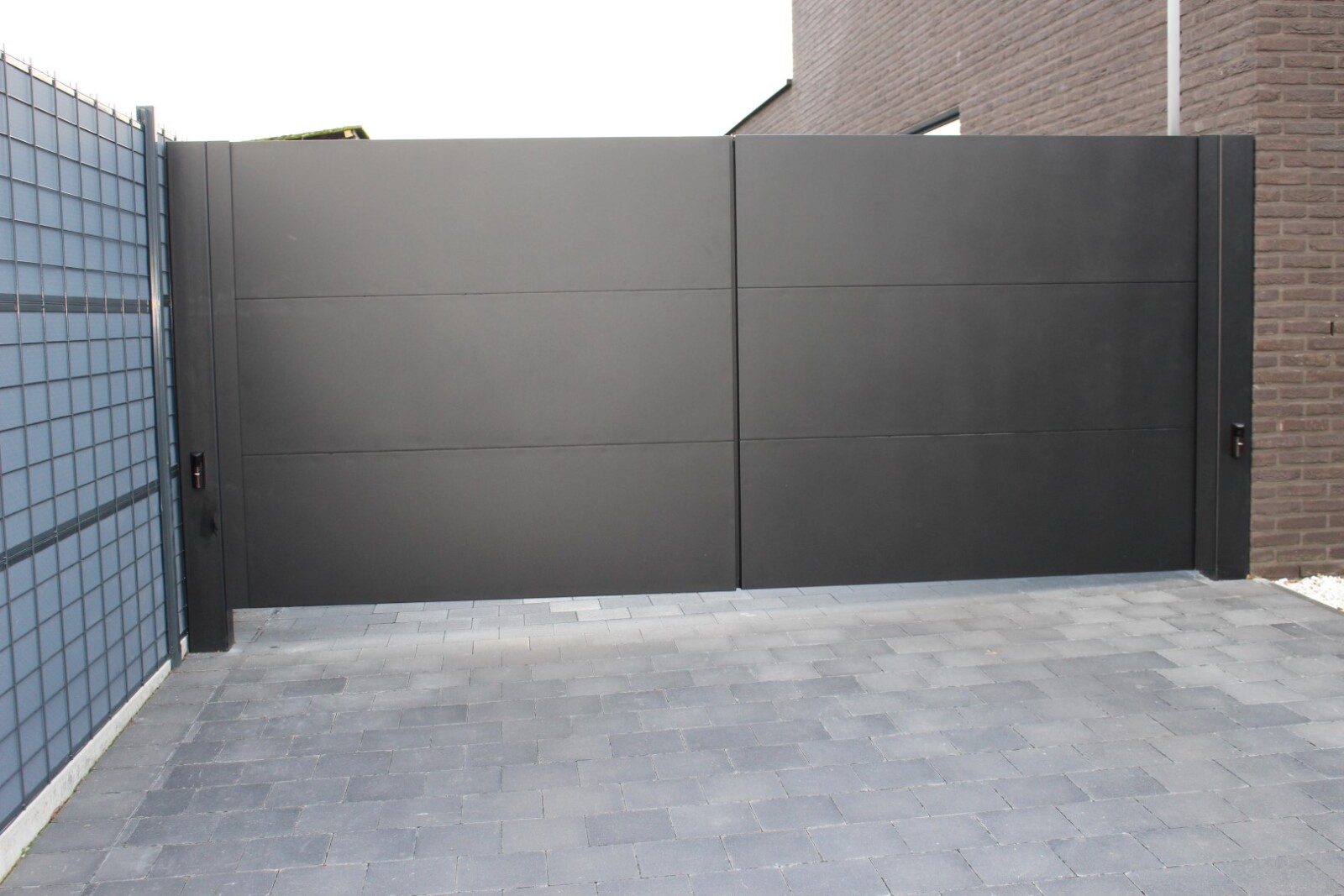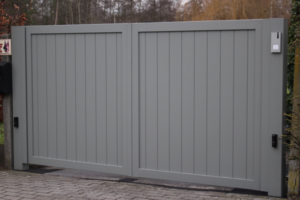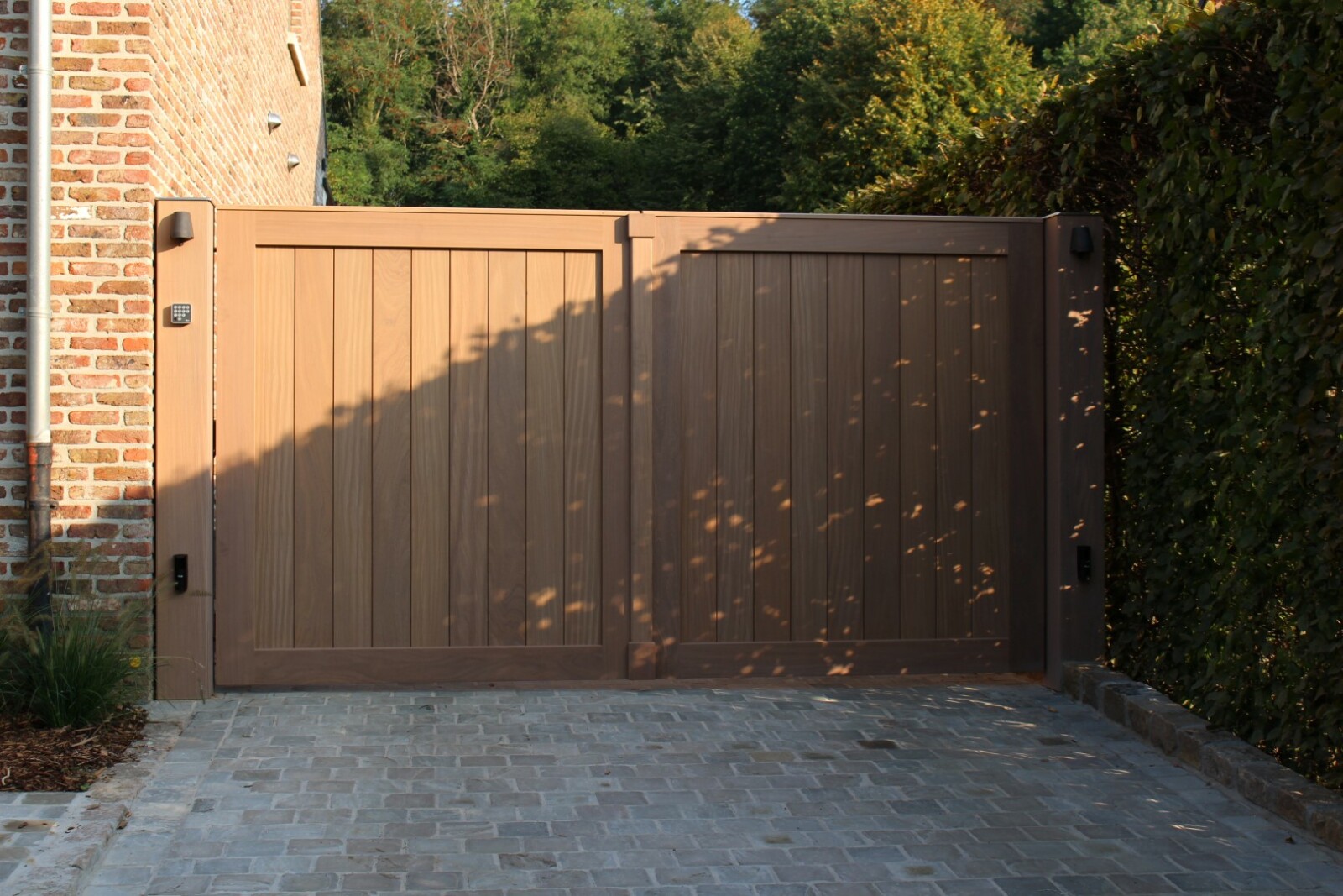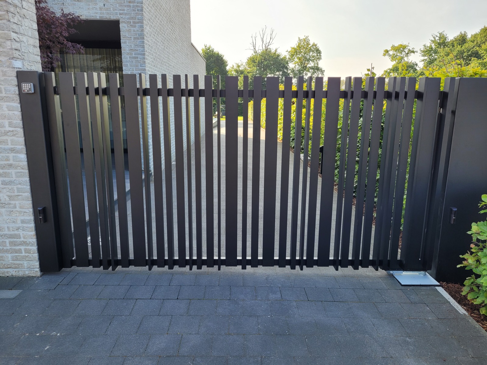 Vleugelpoorten of vast hekwerk in staal, aluminium of massief hardhout